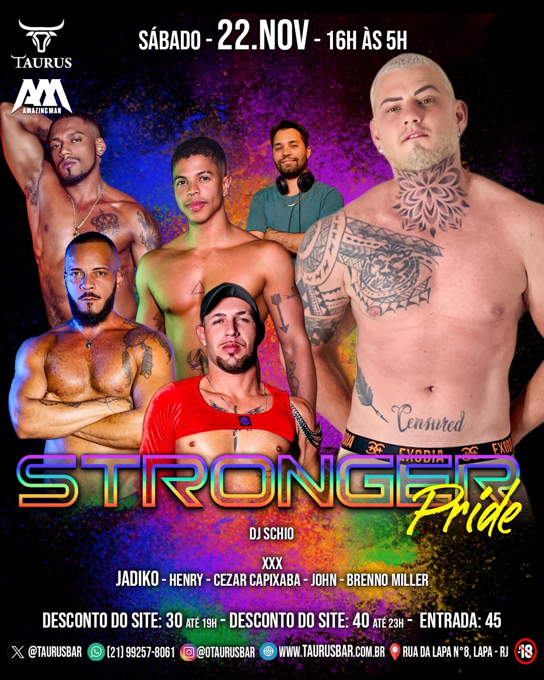 Aos sábados acontecem as festas mais badaladas da casa. É isso mesmo, todo sábado uma balada liberal, com Dj’s convidados animando a pista, em um ambiente super descontraído e democrático, onde diversos homens vem para curtir, conhecer pessoas, fazer amigos, tomar bons drinks e é claro tudo pode acontecer, tudo mesmo.